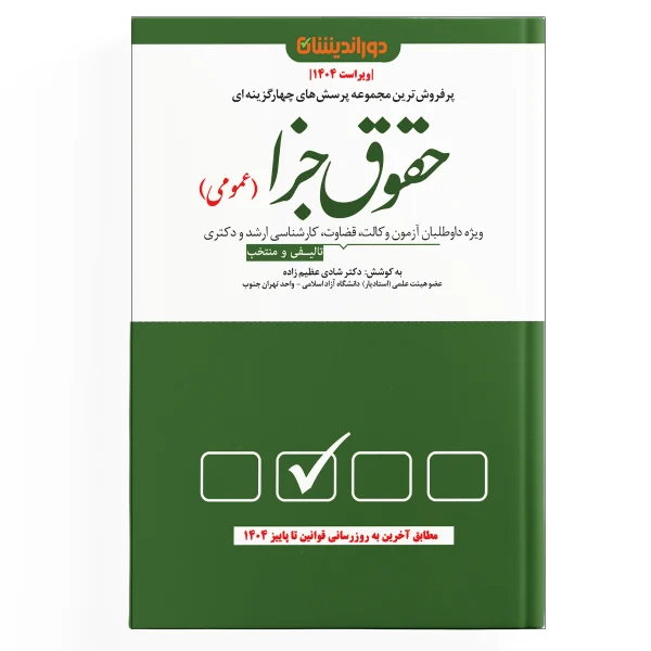 کتابهای دوراندیشان با تستهای تألیفی و سنوات گذشته، پاسخنامه تشریحی و نکات طلایی، بهترین منبع برای آمادگی آزمون وکالت و قضاوت محسوب میشوند. این کتابها به داوطلبان کمک میکنند مفاهیم حقوق جزای عمومی را سریع و کاربردی مرور کنند.