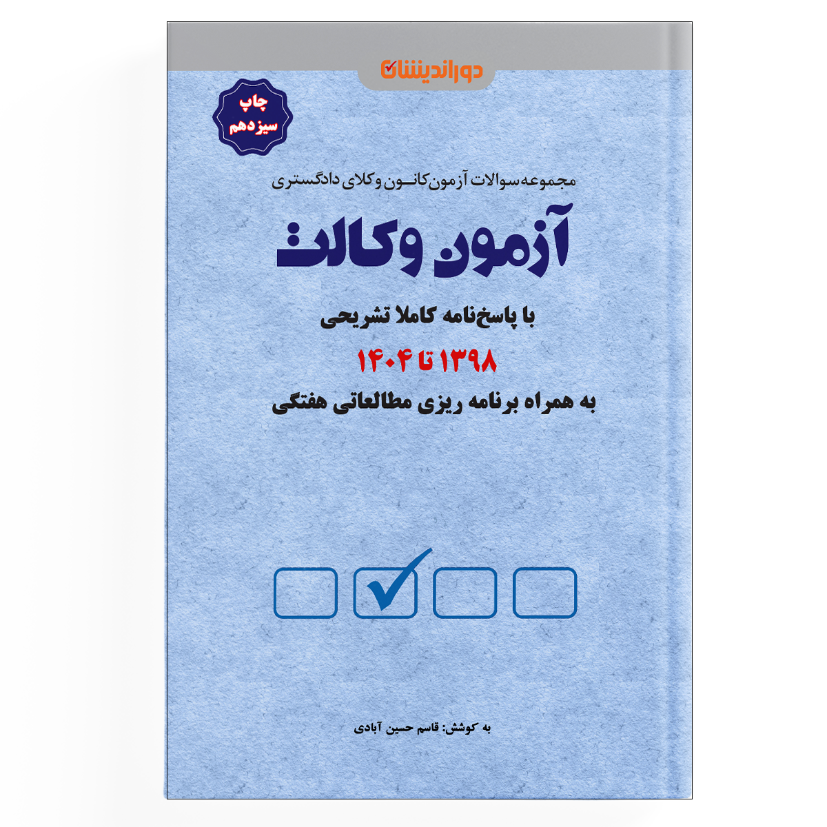 اگر در مسیر آمادگی آزمون وکالت هستید، داشتن یک منبع جامع و استاندارد ضروری است. کتاب حاضر با عنوان مجموعه سوالات آزمون وکالت ۱۳۹8 تا ۱۴۰4 همراه با پاسخنامه تشریحی و مستند، در دو نسخه چاپی و الکترونیکی (PDF قابل دانلود) عرضه میشود. این مجموعه کامل، شما را با سبک طراحی سوالات آشنا میکند و بهترین ابزار برای مرور و جمعبندی است.